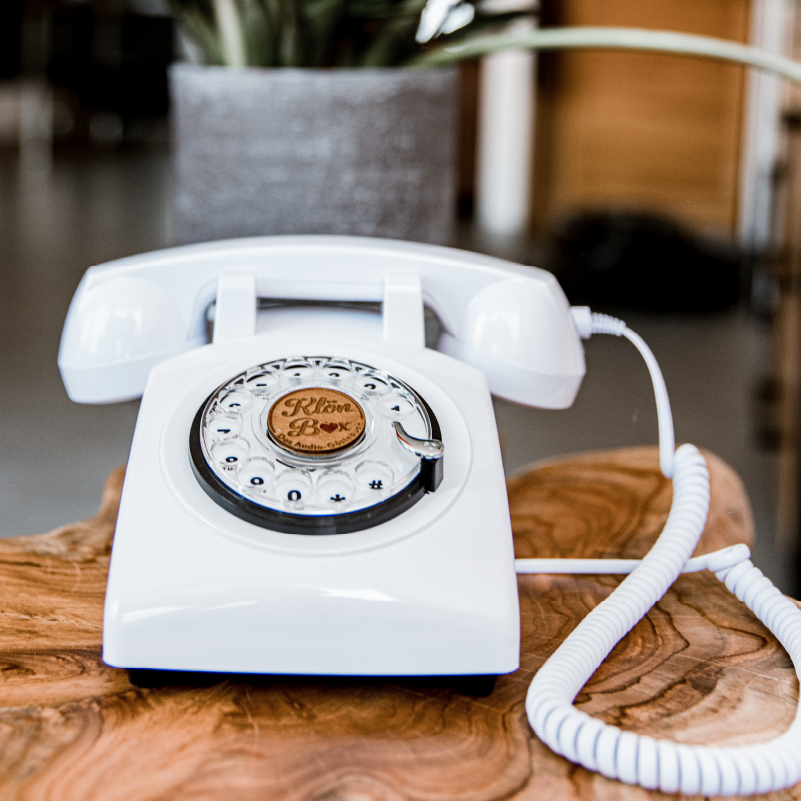 Die KLÖNBOX ist ein Audio-Gästebuch der besonderen Art. Eure Gäste hinterlassen persönliche Sprachnachrichten über ein Vintage-Telefon – emotionale Erinnerungen für die Ewigkeit.
